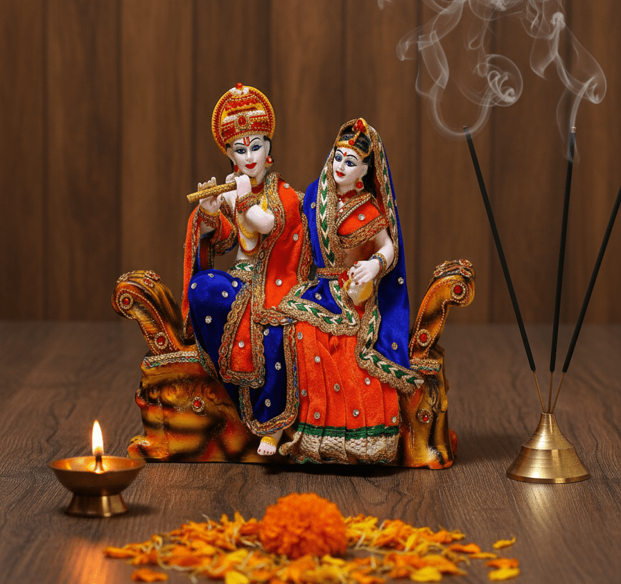 The Sofa Radha Krishna Idol is a high-demand item for those seeking a luxurious and unique representation of the divine couple. Its generous 13-inch size and ornate Sofa Base naturally make it the focal point of any room.