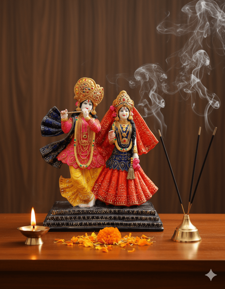This grand Radha Govinda Murti is the perfect embodiment of spiritual love and devotion, believed to bring harmony, wealth, and profound spiritual energy to the home or temple where it is installed.