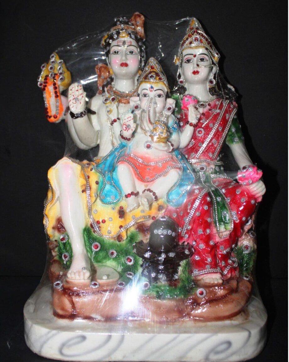 Specification Detail Model Number NGT-149 Deity Shiv Parivar (Shiva, Parvati, Ganesha) Size 20 Inch Material Premium Polyresin (M.D. / Jewelry Finish) Color Multi-colored with Heavy Gold, Red, Green, and Blue Accents Usage Home Temple Centerpiece, Community Mandir, Luxury Devotional Decor