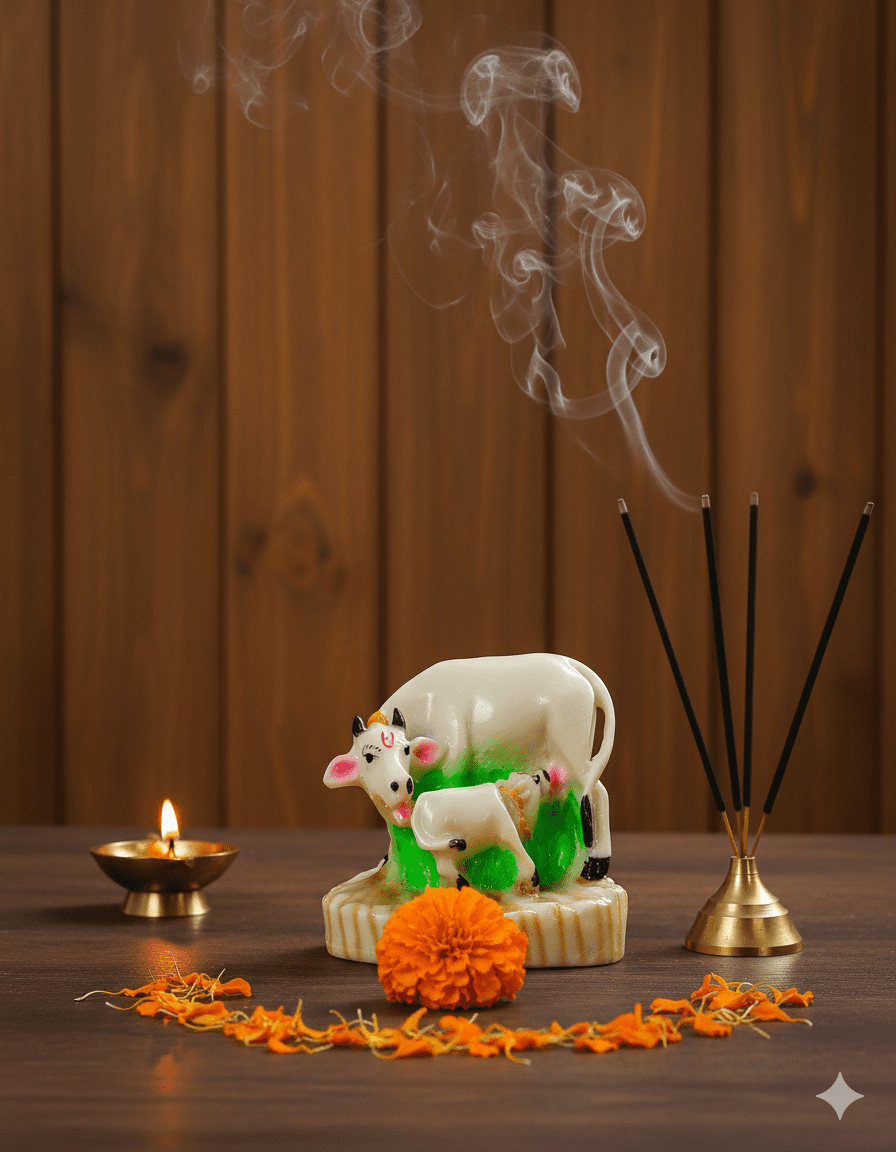 - Compact Design: At just 4.5 inches, it serves as a beautiful White Cow and Calf for Desk display, a small pooja shelf, or as an inspiring piece in any quiet corner.