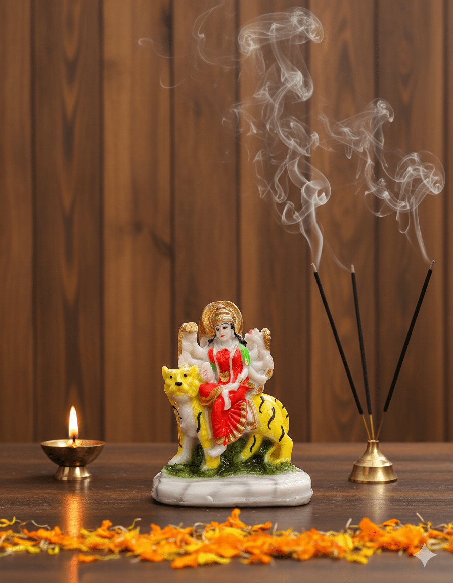 Goddess Durga is revered as the ultimate source of power (Shakti), courage, and the destroyer of all negativity. This beautifully detailed small statue is a powerful representation of the Divine Mother, making it a wonderful way to bring her blessings into confined spaces.