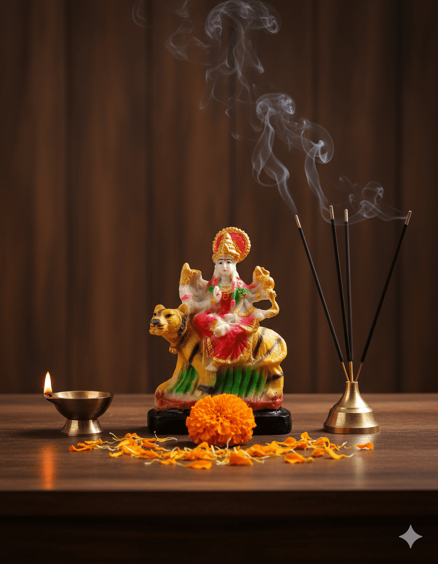 - Symbol of Fearlessness: Maa Durga on her tiger mount symbolizes fearlessness and the strength to overcome evil, offering a constant source of positive energy and protection.