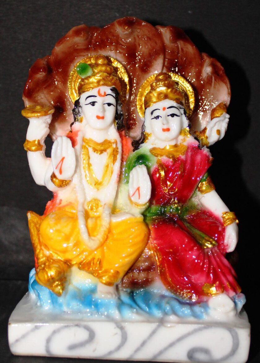 - Vibrant Craftsmanship: Made from durable polyresin, the statue features vibrant, Multi-colored traditional attire. Lord Vishnu is seen with his characteristic conch and chakra, while Lakshmi offers her blessings.