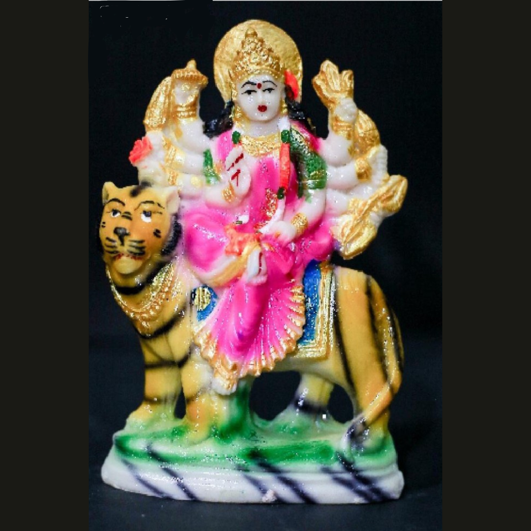 Welcome the blessings of Goddess Durga with this vibrant 6-Inch Idol on Tiger. Standing at 6 inches, this compact statue is rendered in a beautiful pink and gold color scheme, radiating divine femininity and power. It’s the ideal size for a small home shrine, a decorative centerpiece, or as a thoughtful gift during Navaratri and other auspicious occasions.