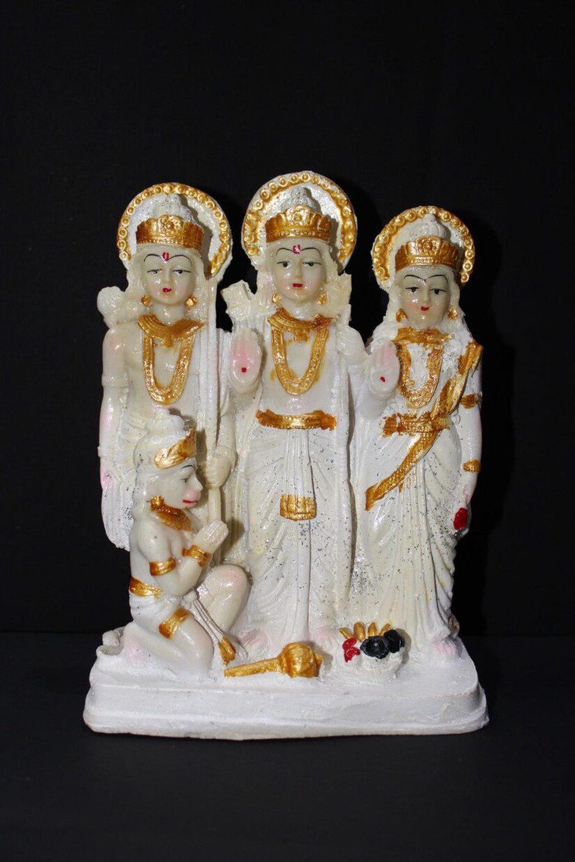 • Intricate Detailing: Each figure—Lord Rama, Goddess Sita, Lord Lakshman, and the devoted Hanuman—is sculpted with minute, devotional detail, reflecting the highest quality of divine artistry.