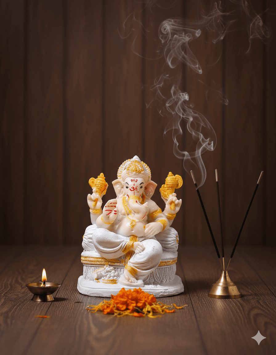 The Radiant 8.5-Inch White and Gold Gadi Ganesha