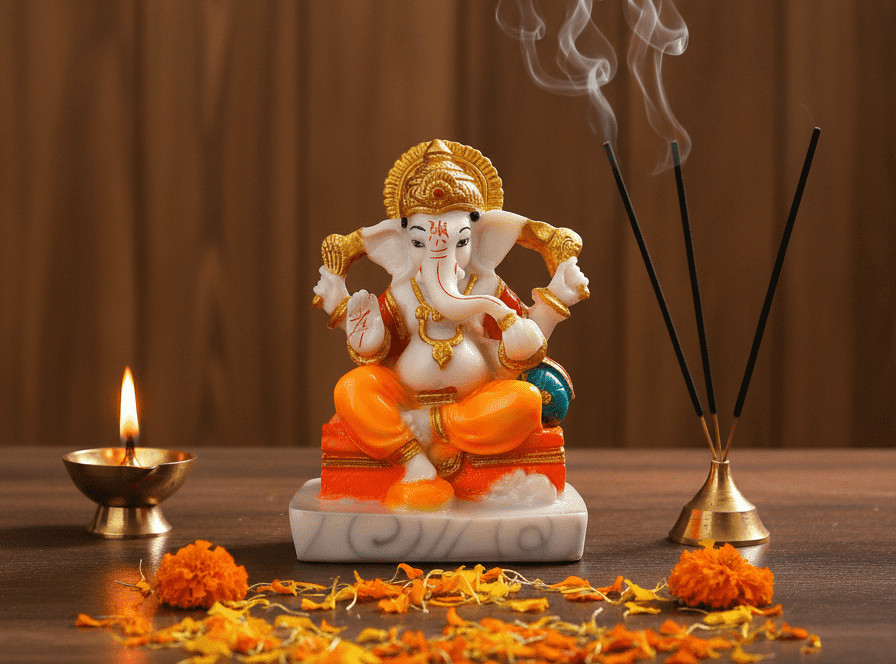 - Divine Hand Gestures: Ganesha’s four hands hold traditional implements and offer the Abhaya Mudra (blessing and fearlessness), ensuring peace and protection