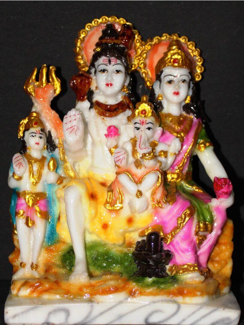 - Vibrant and Detailed Coloring: The statue features rich, multi-toned painting on the clothing of Parvati and Kartikey, contrasting beautifully with the serene, white body of Shiva and Ganesha.