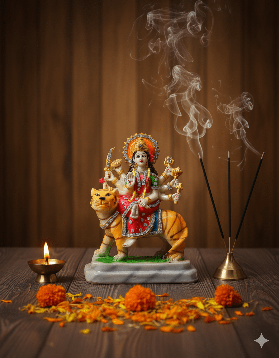 • Symbol of Courage and Victory: Maa Durga, seated on her tiger (Vahana), is the ultimate symbol of courage, protection, and the triumph of righteousness, making it highly auspicious for Vastu placement.