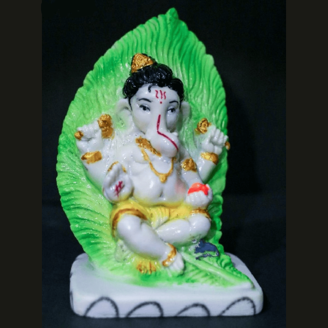 • Color: White Ganesha with Green Leaf Base, Yellow/Gold, and Dark Accents