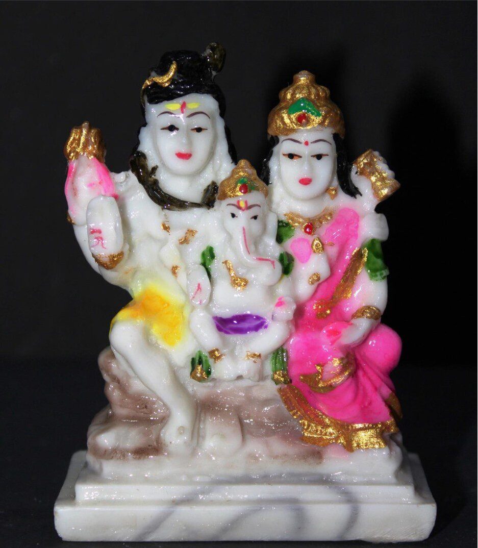 - Vibrant Coloring: Lord Shiva and Ganesha are rendered in white, while Parvati wears a bright pink and gold attire, making the idol visually appealing.