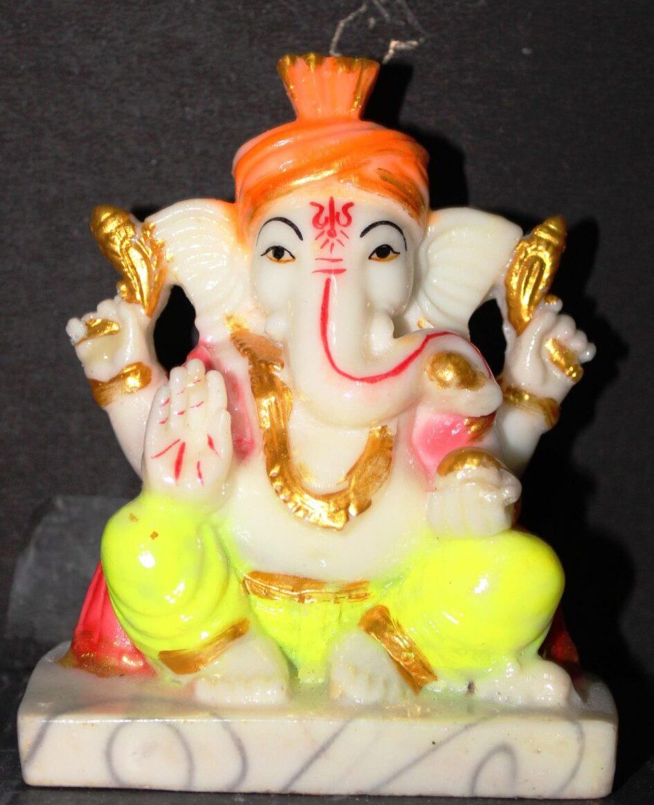 • Pagdi Ganesh Idol, Ganpati Statue, 6 Inch Murti, Marble Dust Ganesha, Home Temple Decor