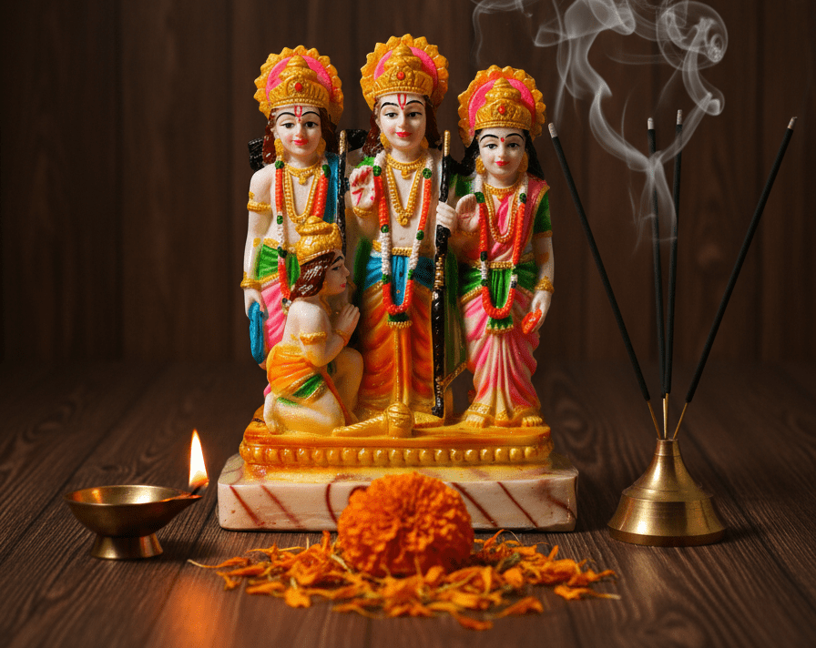 8.5 inch Ram Darbar Statue with Lord Ram, Sita, Lakshman, and Hanuman for Home Temple